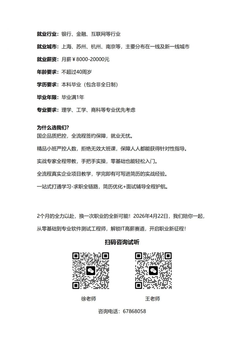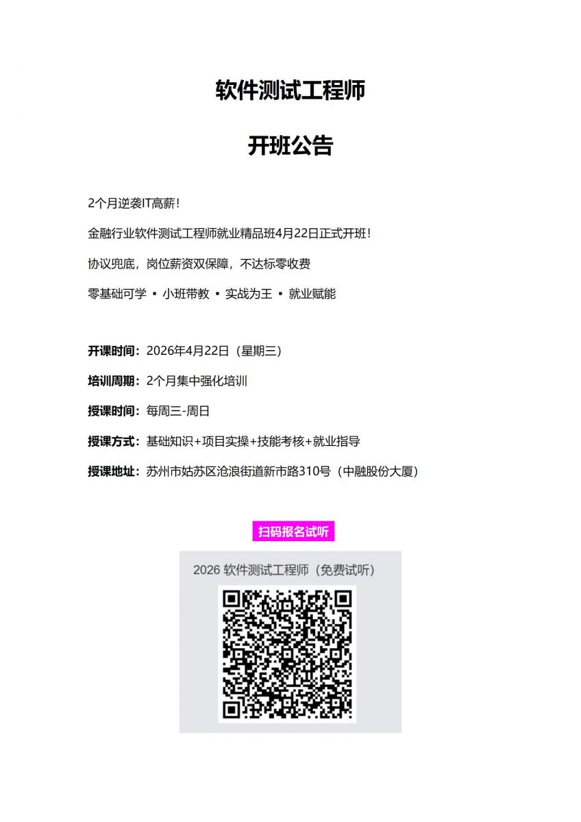 “软件测试工程师” 正式开班了!